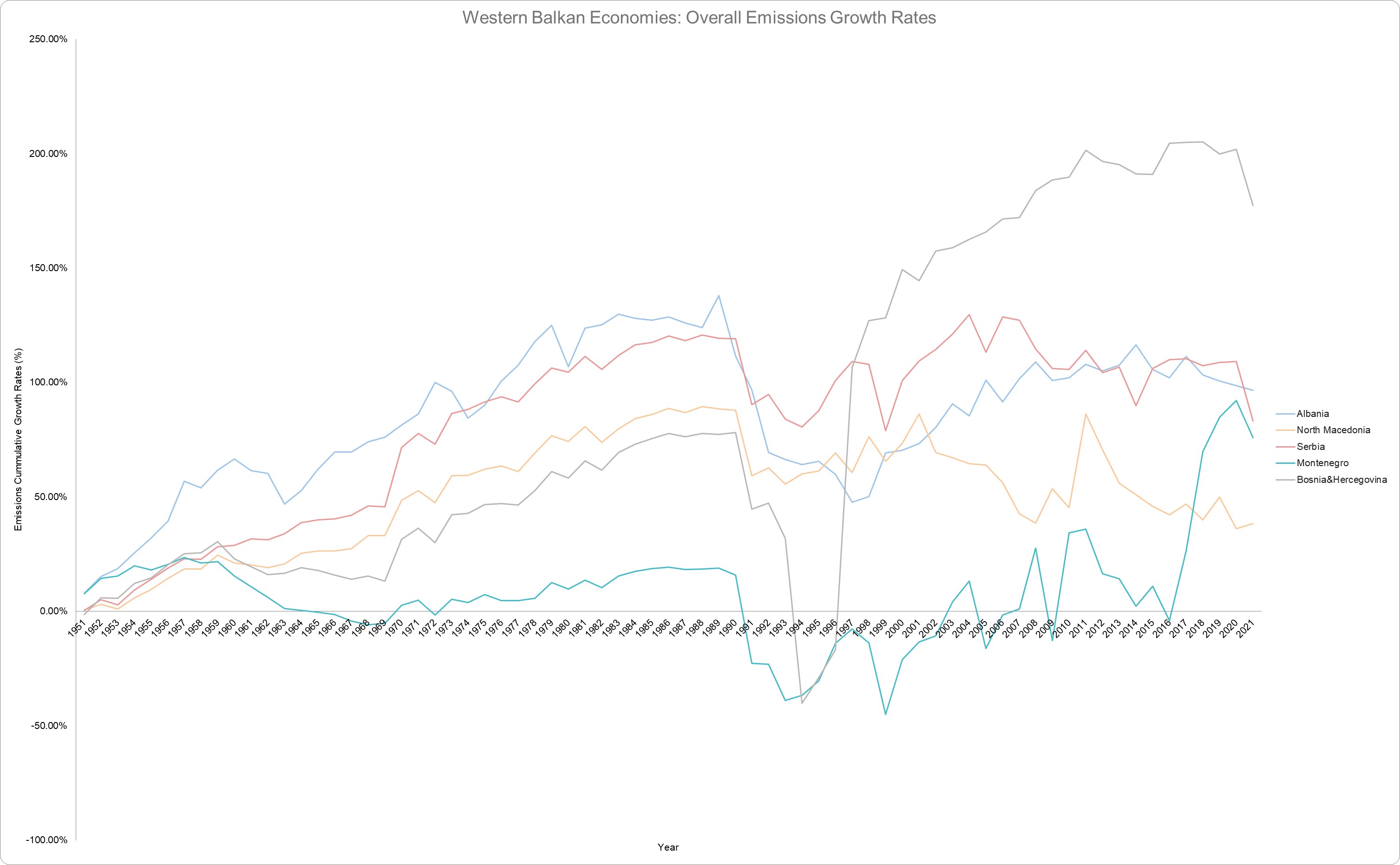 Figure 2: Cumulative Emissions Growth Rates for Western Balkan Economies.